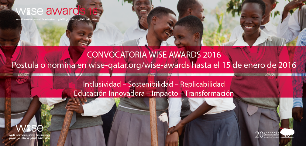 Desde el mes de noviembre y hasta el 15 de enero del 2016, estará abierta la convocatoria para los premios WISE 2016, los cuales, reconocen a los mejores proyectos educativos con impacto en la educación de los diversos países.