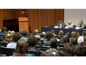 Asimismo, Pamela Pérez Ponce, también integrante del SBEI, obtuvo mención honorífica en la categoría de Licenciatura. La becaria purépecha de Michoacán, licenciada en Ciencia Política y Administración Pública por la Facultad de Ciencias Políticas y Sociales (FCPyS), realizó un abordaje sobre el gobierno autónomo indígena de Cherán K’eri.