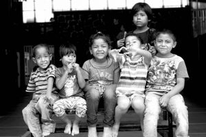 Niños y niñas en un albergue para migrantes en México.