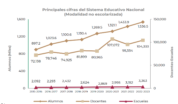 [1] DGPPyE (2023). Principales cifras del sistema educativo nacional 2022-2023. Dirección General de Planeación, Programación Y Estadística Educativa. https://www.planeacion.sep.gob.mx/Doc/estadistica_e_indicadores/principales_cifras/principales_cifras_2022_2023_bolsillo.pdf