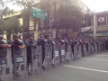 Otro contingente de la marcha se desvía a la SEP donde hacen entrega, bajo la lluvia, de sus demandas. El contingente espera, en República de Brasil, respuesta de la SEP.