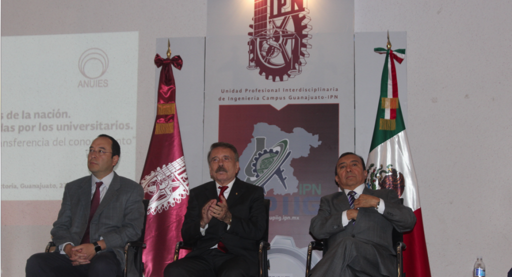 Silao, Guanajuato.- En el marco del foro regional “México 2018: Los desafíos de la nación. Las plataformas Electorales discutidas por los universitarios. Economía basada en la innovación y transferencia del conocimiento”, el Director General del Instituto Politécnico Nacional, Mario Alberto Rodríguez Casas, señaló que es necesario que las instituciones educativas del país deben involucrarse activamente en los procesos democráticos del país, a fin de poder traducir las necesidades educativas en políticas públicas que pueda aplicar el próximo gobierno federal.