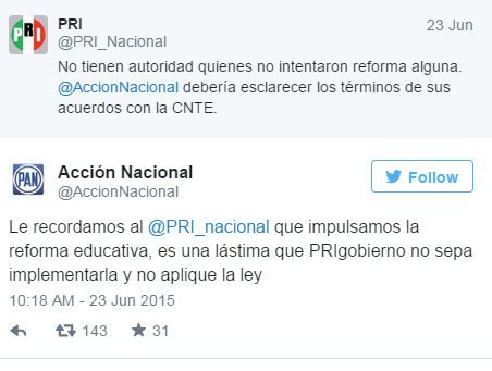 Lamentamos las expresiones de senadores y diputados del PAN, cuyos gobiernos federales abdicaron a la rectoría del Estado en materia educativa, entregándola a Elba Esther Gordillo.