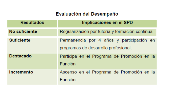 Las bonificaciones concursables estarán definidas por dos evaluaciones: la evaluación del desempeño docente (que se había suspendido), y la evaluación adicional, que se realizará para efectos de los incentivos. En la siguiente tabla aparecen los resultados de la Evaluación del Desempeño, y sus implicaciones en el Servicio Profesional Docente.
