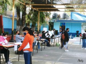 La comunidad escolar de ese plantel inició actividades presenciales en modalidad híbrida, priorizando la atención presencial para las y los alumnos con mayor necesidad de apoyo o rezago educativo, por lo que la mayoría del alumnado continuó con clases a distancia.