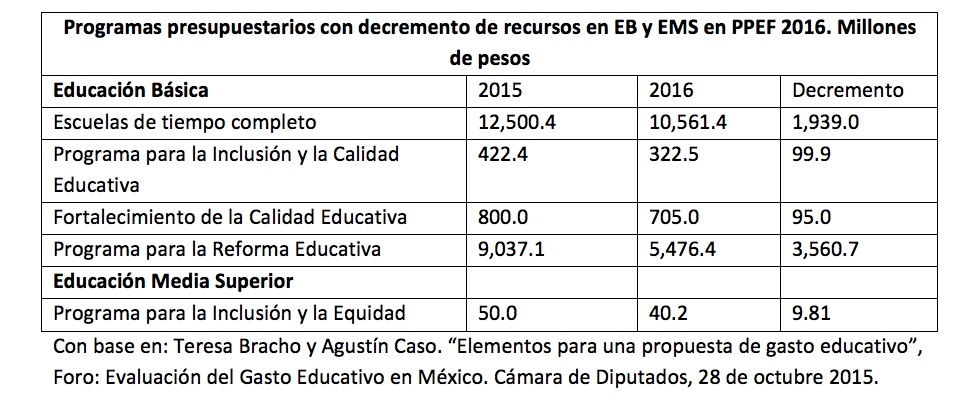 - Reducción presupuestal en programas clave para la Reforma Educativa