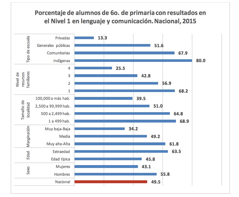 Los resultados de PLANEA 2015 arrojan lo que ya sabemos: nuestro sistema educativo es inequitativo y excluyente. La mitad de la población infantil de 6º de primaria no cuenta con las competencias de lenguaje y comunicación para desarrollarse en la sociedad del conocimiento.