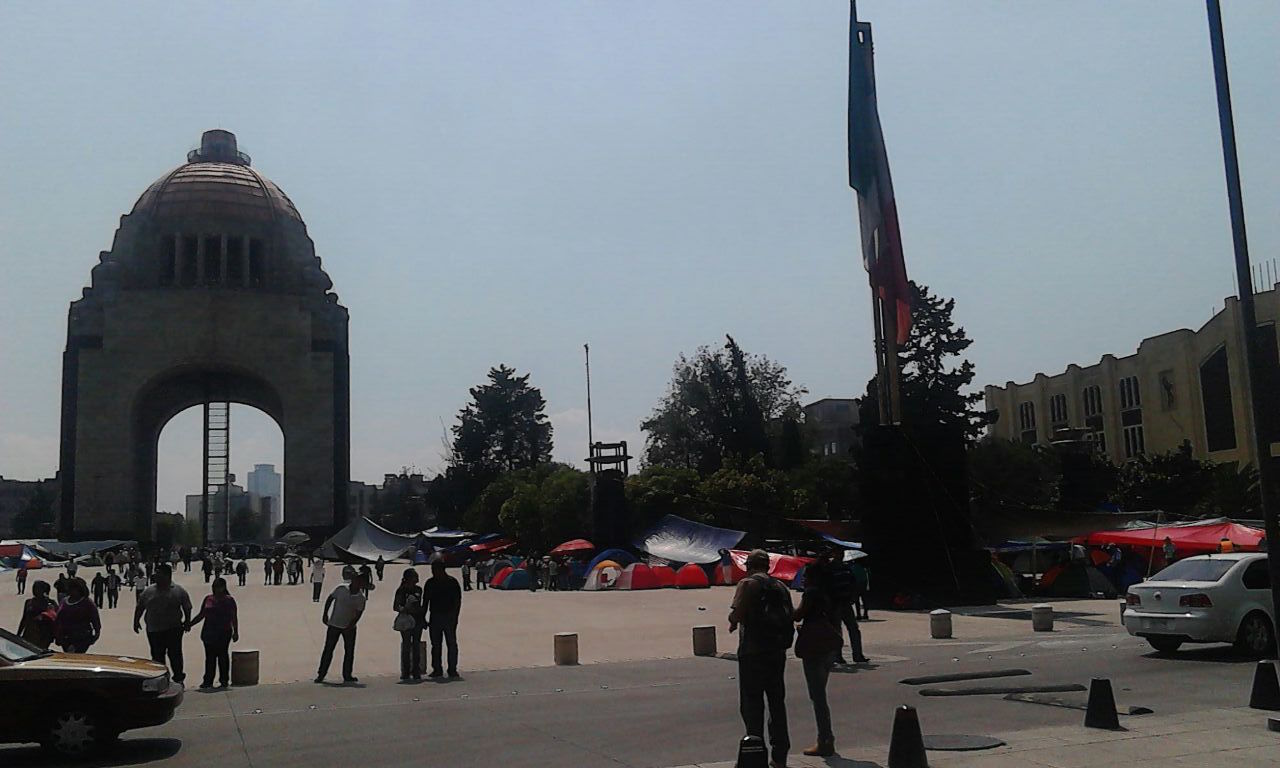Mientras algunos integrantes de la CNTE se manifestaban en el centro de la Ciudad de México, otra parte se instalaba en el Monumento a la Revolución, reforzando el plantón instalado meses atrás por la Coordinadora.